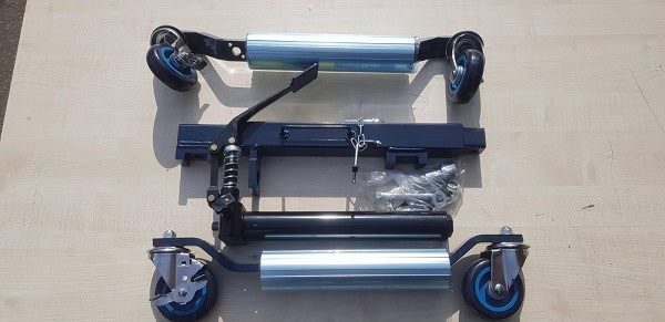 Vehicle positioning hydraulic wheel skates with aluminium rollers and pu wheels.